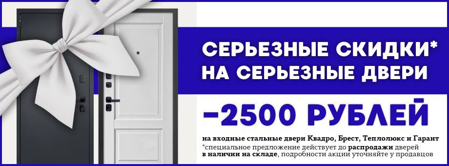 С 1 октября по 1 ноября 2025 г. ДАРИМ СКИДКУ 2500 р. * на следующие модели входных дверей: