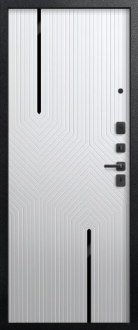 Эта модель имеет дизайнерскую внешнюю панель. Рисунок на МДФ – лаконичный, что позволяет двери вписаться в любой интерьер. При отличных технических характеристиках у нее стильный внешний вид.