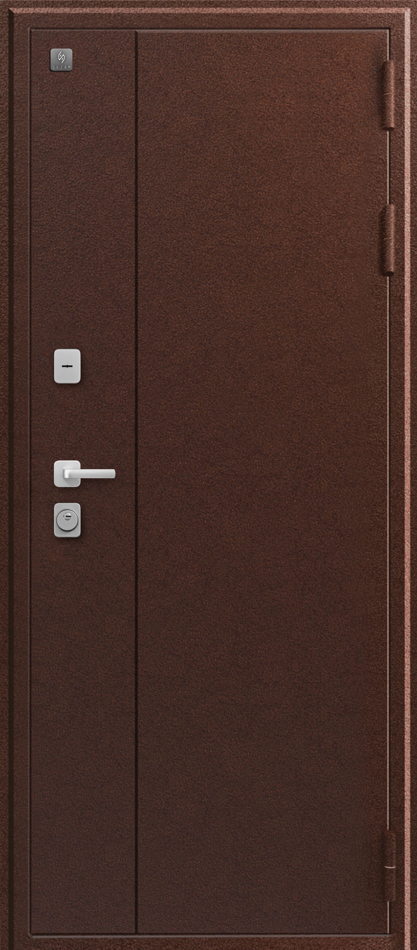 Замки двух типов закрывания – сувальдный SEZAM 103, 3 класса, и цилиндровый SEZAM 102, 4 класса обеспечивают надежную защиту. Также воспрепятствуют вскрытию 23 противосъемных штыря со стороны петель.