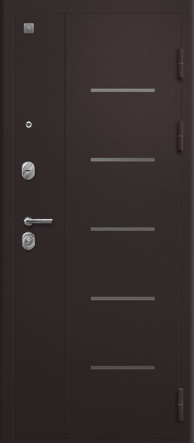 Замки двух типов закрывания – сувальдный SEZAM 103, 3 класса, и цилиндровый SEZAM 102, 4 класса обеспечивают надежную защиту. Также вскрытию воспрепятствуют 3 противосъемных штыря со стороны петель.