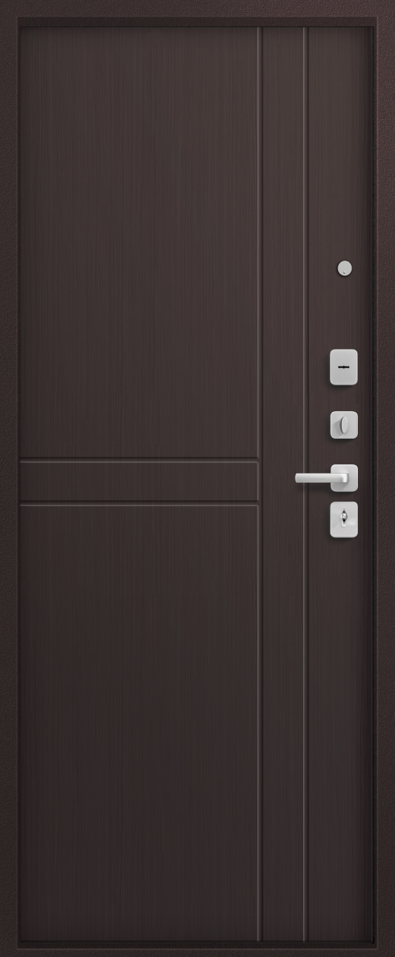 Три контура уплотнения защищают квартиру от постороннего шума и сквозняков. Сталь толщиной 1,4 мм обеспечивает достаточную прочность при умеренной массе готового изделия. Для обеспечения дополнительной жесткости конструкции используется технологический вертикальный гиб(штамп) с внешней стороны полотна. Наполнитель двери – пенополистирол, двойной слой которого обеспечивает тепло и шумоизоляцию двери.
