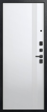 Эта модель имеет дизайнерскую внешнюю панель. Рисунок на МДФ – лаконичный, что позволяет двери вписаться в любой интерьер. При отличных технических характеристиках у нее стильный внешний вид.
