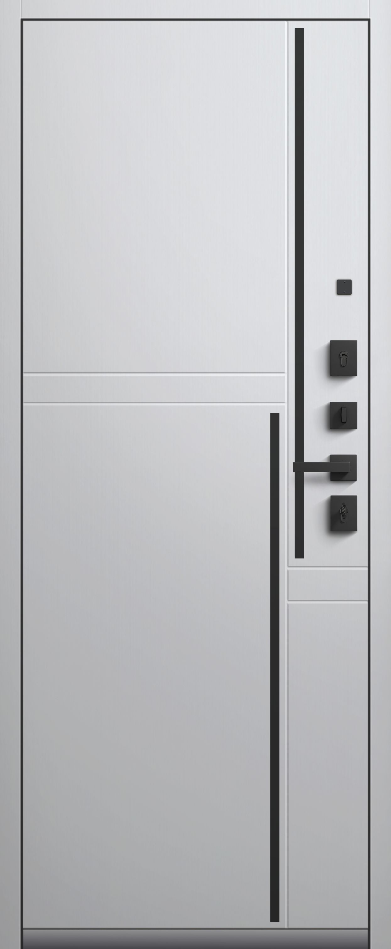 Элементы декоративных металлических молдингов на внешней и внутренней панели, придают двери стильный и современный вид, а горизонтальные линии фрезеровки оригинально дополняют данную модель.