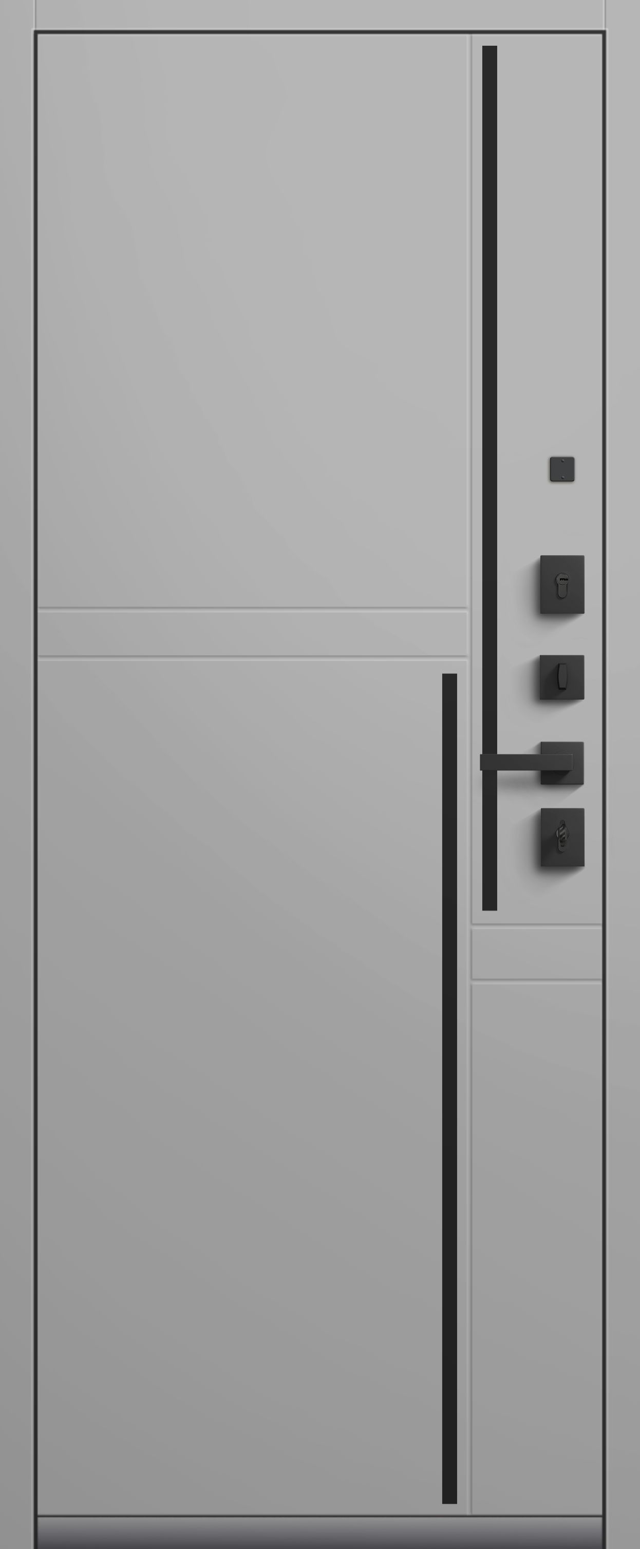 Элементы декоративных металлических молдингов на внешней и внутренней панели, придают двери стильный и современный вид, а горизонтальные линии фрезеровки оригинально дополняют данную модель.